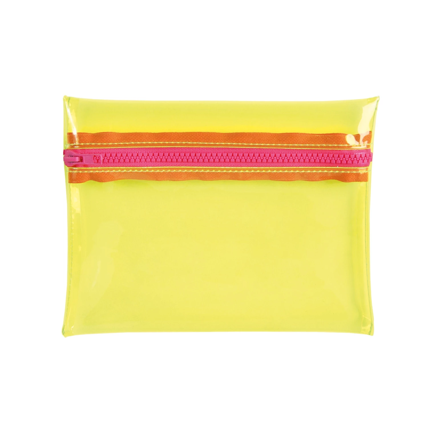 The case has a contrasting blue zipper that creates a neon pop look.
