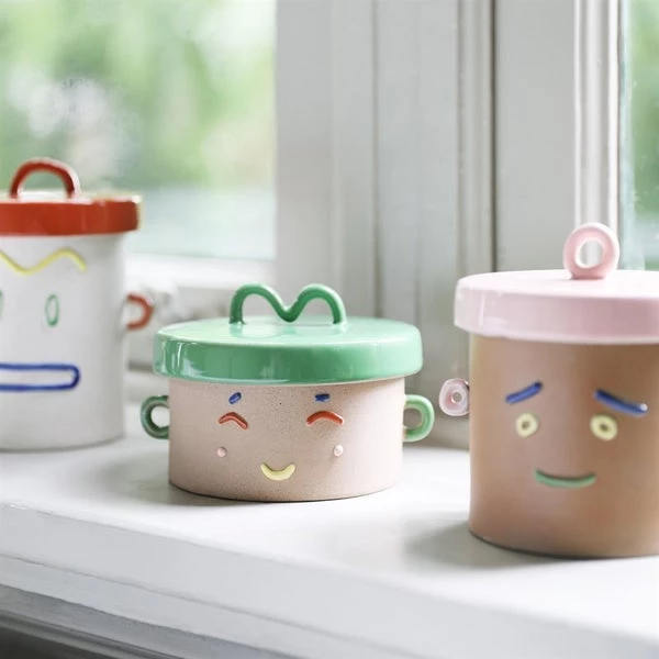 Un caja con cara y tapa para almacenar lo que se te ocurra..perfecta para decorar la cocina, el salón o la habitación. Material: Gres 9 x 13 cm. & klevering se fundó en 1992 en Amsterdam y, a lo largo de los años se ha convertido en un referente para los accesorios del hogar por su reconocible estilo que mezcla lo elegante con lo original, e intenta llevar buen humor y alegría a cualquier espacio. Además trabajan con nuevos diseñadores y artistas holandeses, para enseñar su trabajo más allá de sus fronteras.