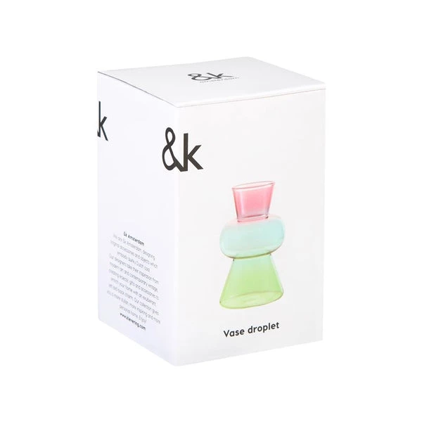 Los jarrones Droplet en formas divertidas y llenas de color son geniales para alegrar cualquier lugar de casa u oficina. La colección consta de 8 jarrones de formas y colores diferentes. & klevering se fundó en 1992 en Amsterdam y, a lo largo de los años se ha convertido en un referente para los accesorios del hogar por su reconocible estilo que mezcla lo elegante con lo original, e intenta llevar buen humor y alegría a cualquier espacio. Además trabajan con nuevos diseñadores y artistas holandeses, para enseñar su trabajo más allá de sus fronteras. 12 x Ø 8 cm. Cristal.