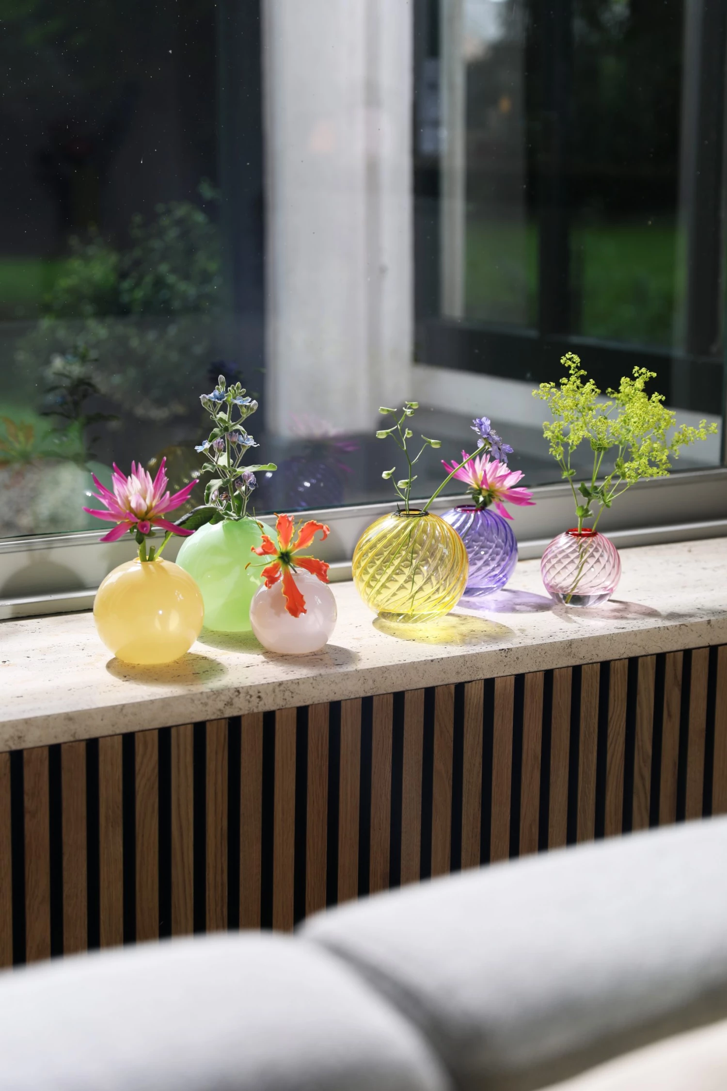 This fun vase is inspired by marbles. It’s created for little flowers and will induce a smile.