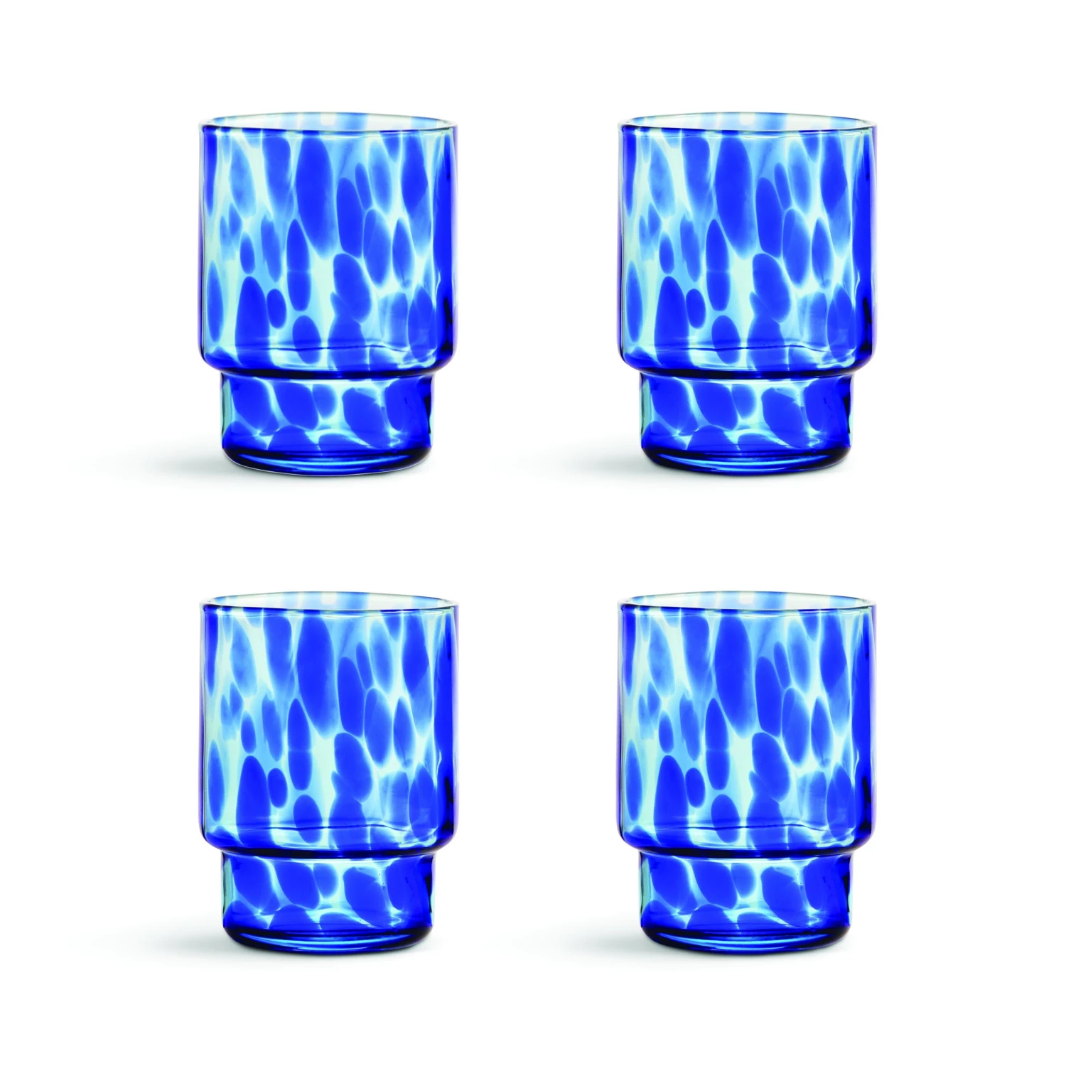 Stunning glass for any occasion. This set of 4 glasses are hand blown, as a result each one is unique with not two being the same. Combine with the matching carafe from the collection to complete the look.