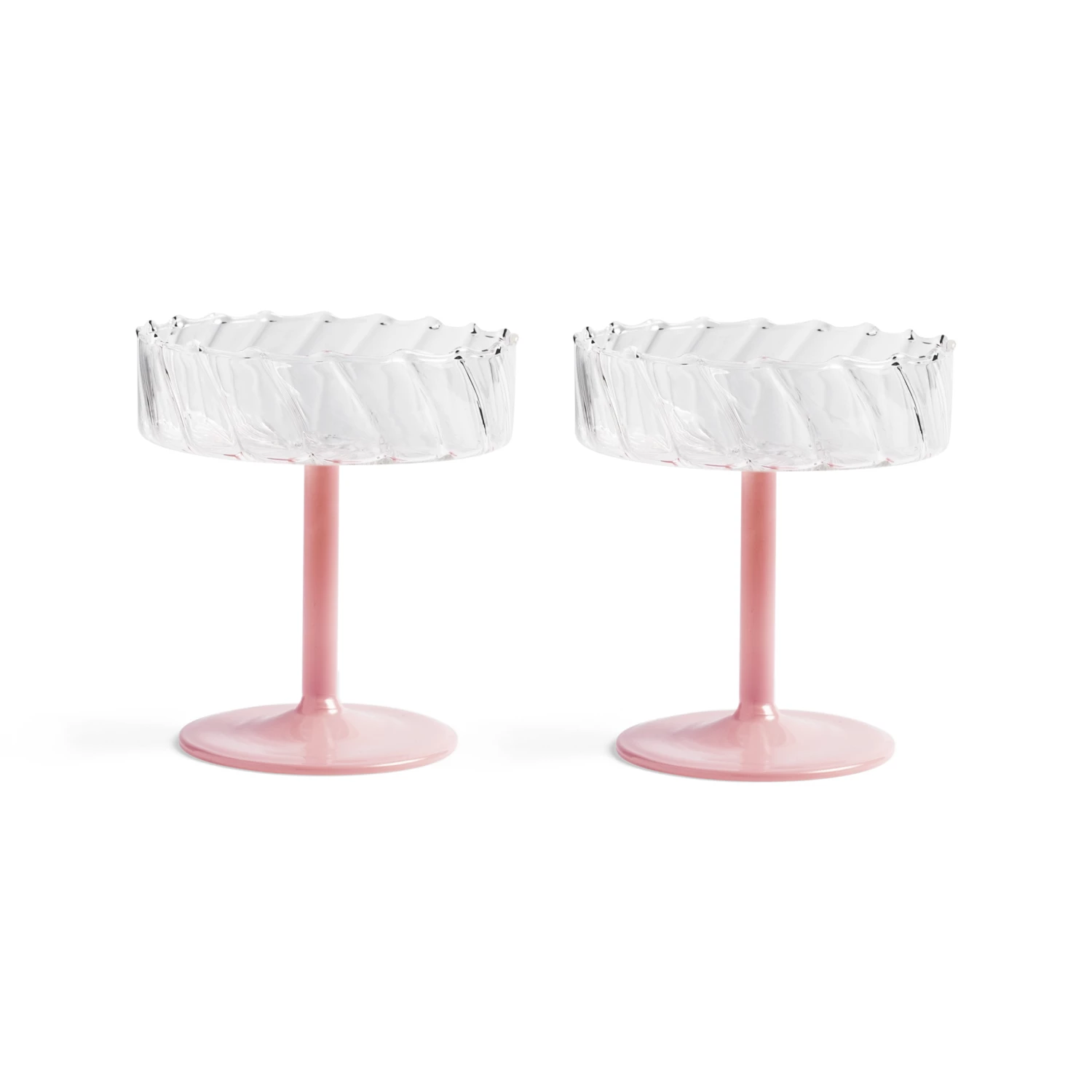 These set of retro glasses, the coupe Twirl, have a pink base. All your drinks will look smashing in these glasses. Designed by Dutch brand &klevering / &k amsterdam.