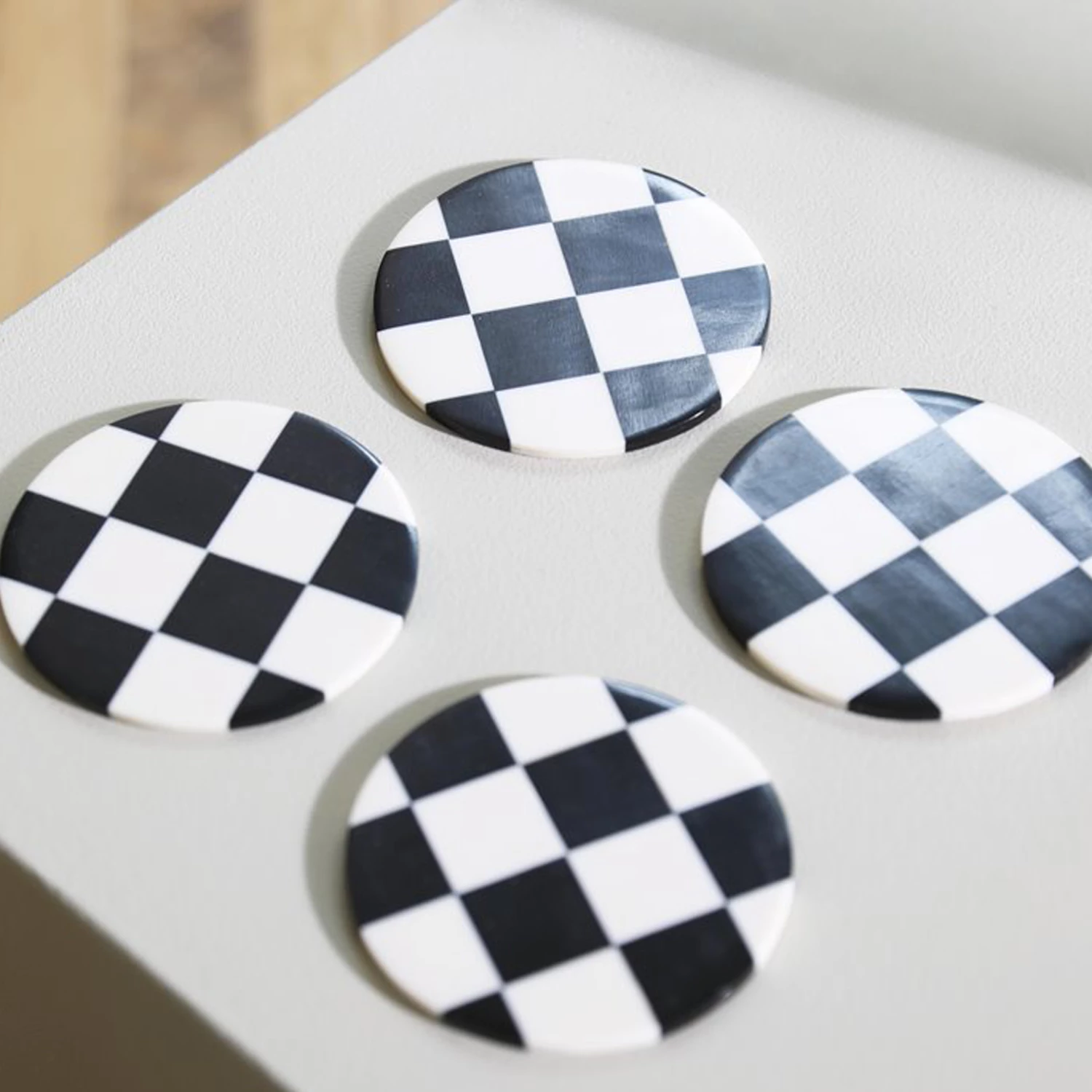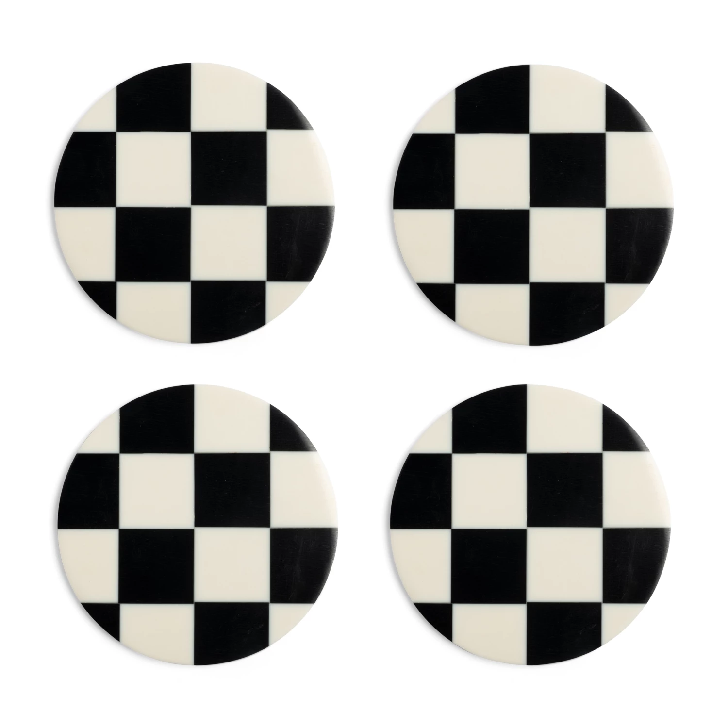 Create a stylish table in your living room and stop those drips with this black check coaster set.