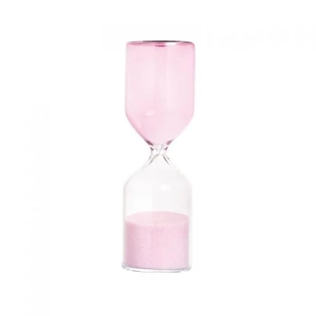 Transparent glass hourglass, pink sand do you have a friend who is always late.