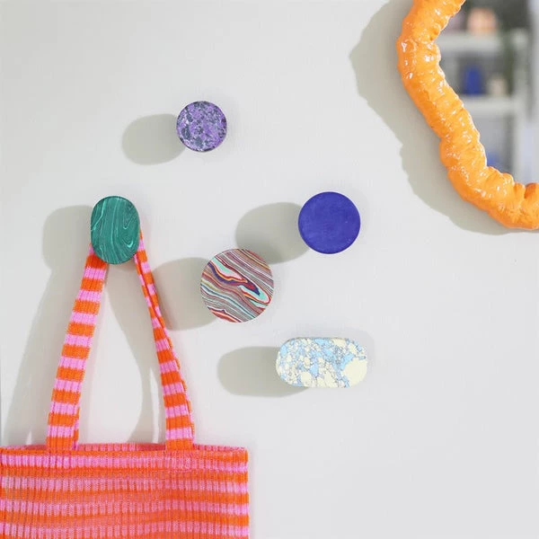 De perfecte knop om je jas op te hangen of om een saaie kast op te fleuren. Wordt geleverd met schroef en moer. Ook verkrijgbaar in andere kleuren en vormen. Materiaal: Marmerresidu Afmeting: 3,5 x Ø 6 cm