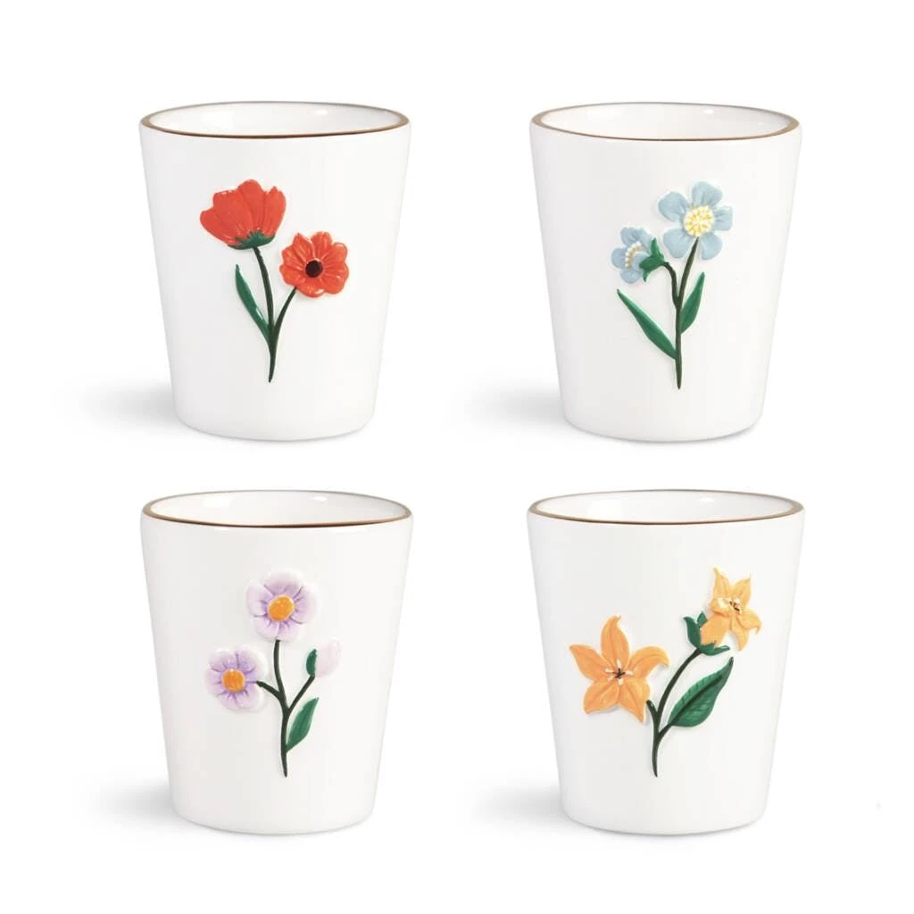 This set of four Porcelain Gold Rimmed delicate wild Flower Tumblers are hand painted making each set individual to you.