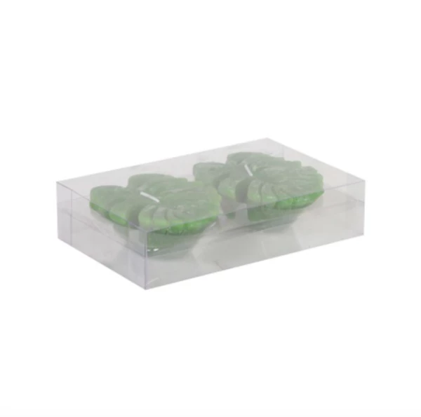 Create a cosy atmosphere at home with a 2 pack monstera candle set. Made of wax and has an estimated burning time of 1 hour. Size: 10.5 x 8.5 x 3 cm Material: Wax