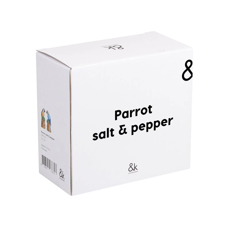 Parrot Salt & Pepper Shaker set by & Klevering. Add a mini statement to your dining table with this fun and quirky colourful salt & pepper shaker set. With a hand painted feel in colours of the tropics this set makes a great gift to a loved one or too yourself. Refill at the bottom.