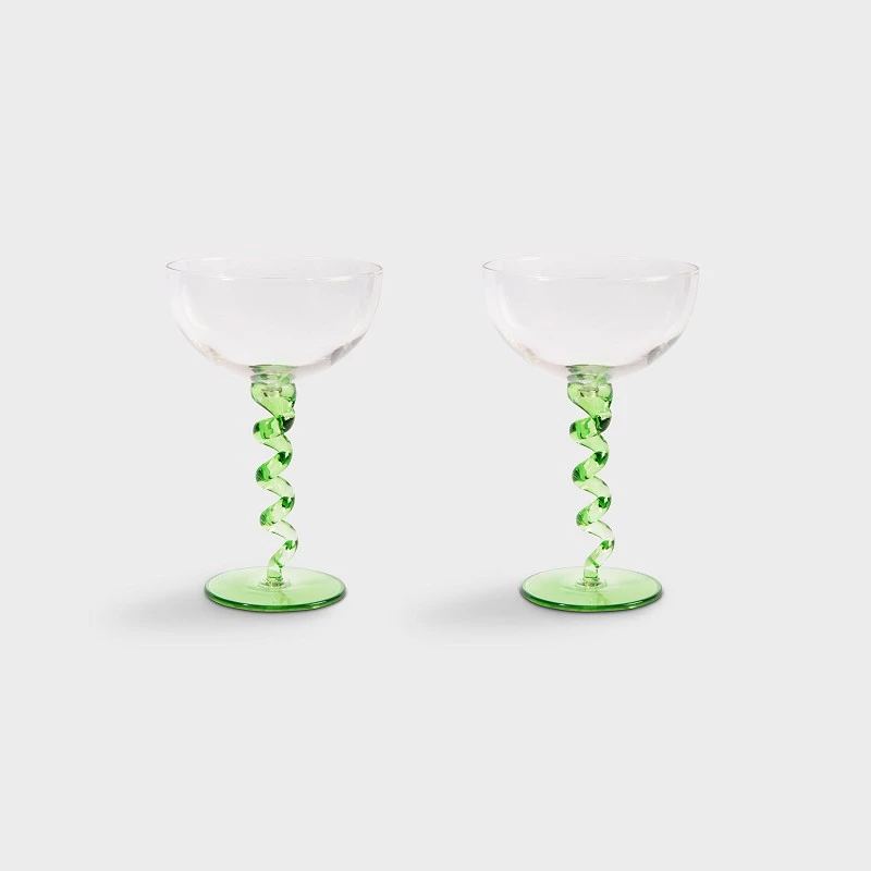 Eat your favourite dessert in these spiral coupes! They are perfect for delicious ice cream or a glass of Prosecco. They look great on any table due to the bright solid green colour and a twisted foot.