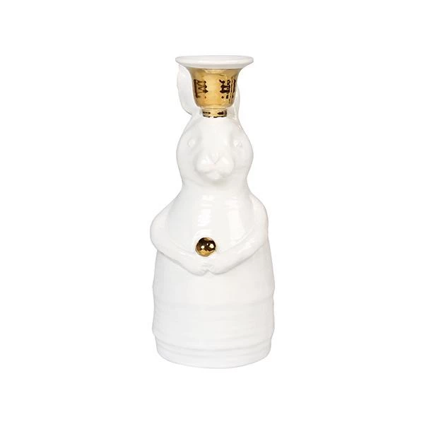 Ceramic artist Anouk Kramer created three candle holders in the shape of a squirrel, rabbit and a bear. This rabbit holds a gold colored ball and has a holder on his head for a 2.2cm candle. This festive animal comes in a giftbox.
