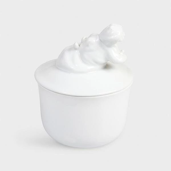 Flusspferde geben einen ausgezeichneten Deckel für schöne Porzellandosen wie diese ab. Dose mit Nilpferdkopf, aus Porzellan, 16 x Ø 12,5 cm, designed in Amsterdam